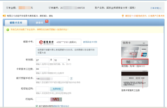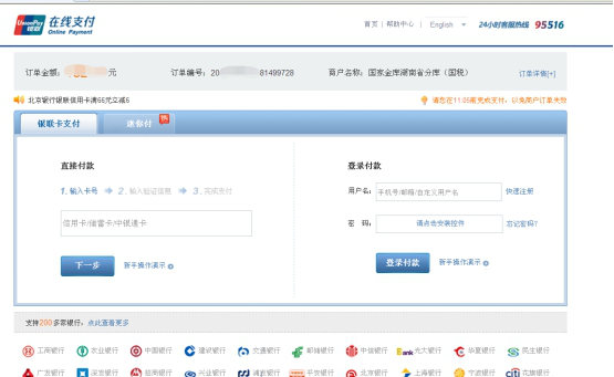 4、進(jìn)入銀聯(lián)在線繳稅頁(yè)面