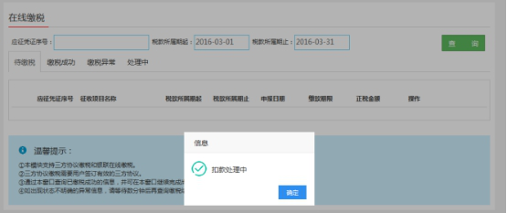 4、【確定】后,銀行扣款,返回信息“扣款處理中”