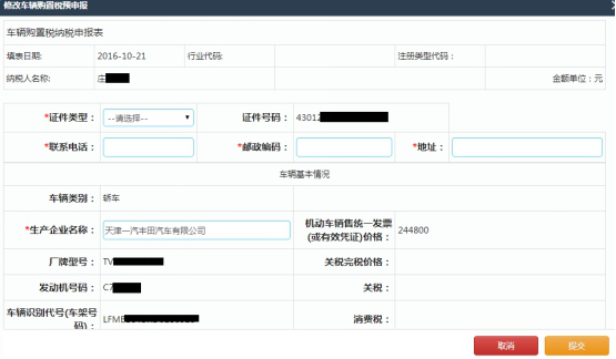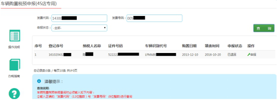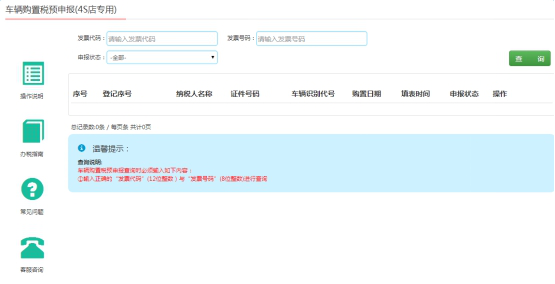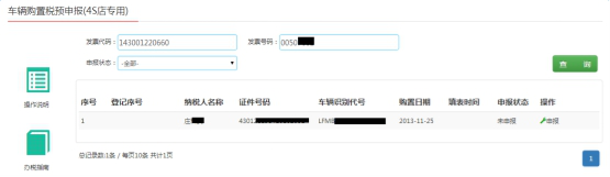 進(jìn)入車輛購置稅預(yù)申報(bào)(4S店專用)頁面