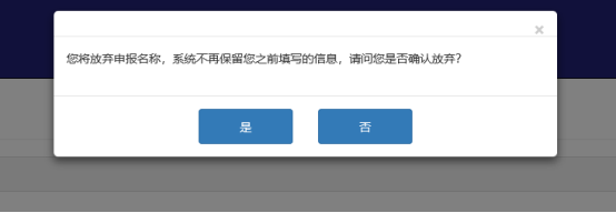 2)點擊放棄申報將放棄名稱的申報,根據提示是否確定放棄申報。