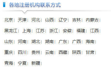 首頁提供了各地注冊機構的聯(lián)系方式,如圖: