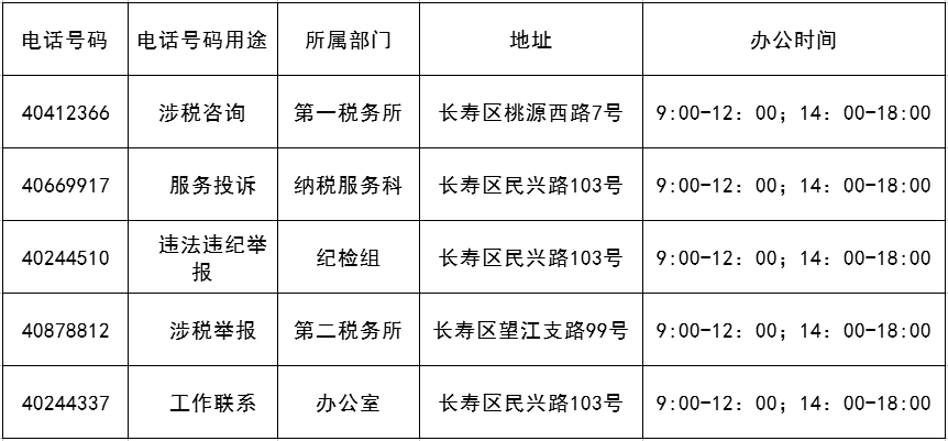 國家稅務總局重慶市稅務局 地址:重慶市渝北區(qū)西湖路9號 郵編:401121 納稅服務熱線:023-12366 電話:023-。。。