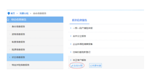 云南省電子稅務(wù)局-【我要辦稅】→【綜合信息報(bào)告】→【狀態(tài)信息報(bào)告】→【非正常戶解除】