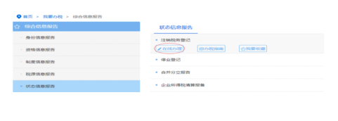 登錄云南省電子稅務局-【我要辦稅】→【綜合信息報告】→【狀態(tài)信息報告】→【注銷稅務登記】