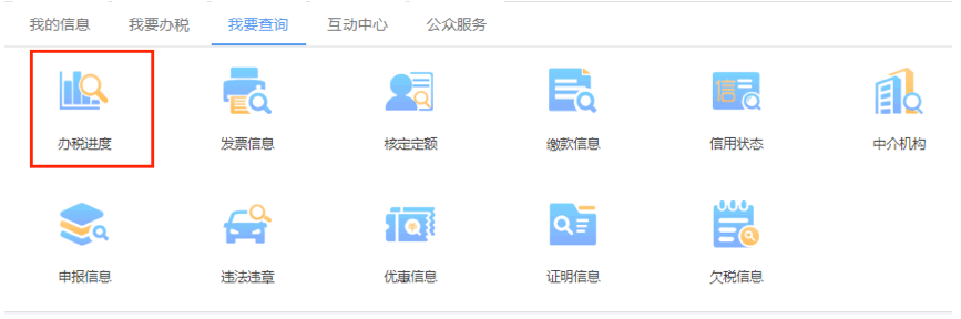 納稅人可通過(guò)【我要查詢】——【辦稅進(jìn)度】模塊,查詢已提交辦稅事項(xiàng)受理進(jìn)度。