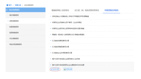 【我要辦稅】→【綜合信息報告】→【資格信息報告】→【其他資格信息報告】→【境外注冊中資控股居民企業(yè)主管稅務機關的變更】