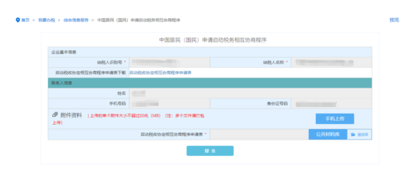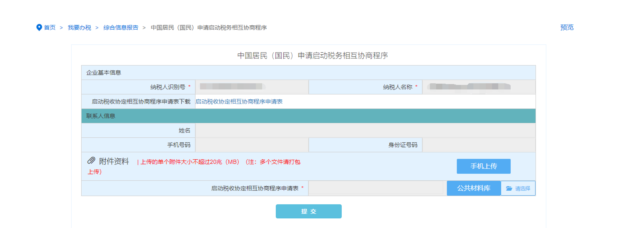 本功能模塊用于中國居民(國民)申請啟動稅務(wù)相互協(xié)商程序。