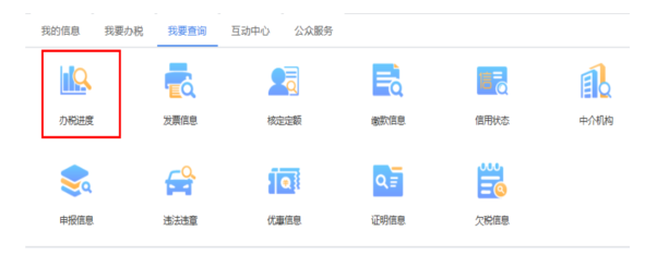 可通過【我要查詢】——【辦稅進(jìn)度】模塊,查詢已提交辦稅事項(xiàng)受理進(jìn)度。
