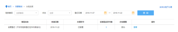 可通過【自我查詢】——【辦稅進(jìn)度查詢】模塊,查詢已提交辦稅事項(xiàng)受理進(jìn)度。