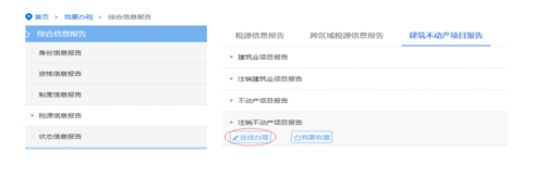 【我要辦稅】→【綜合信息報(bào)告】→【稅源信息報(bào)告】→【建筑不動(dòng)產(chǎn)項(xiàng)目報(bào)告】→【注銷不動(dòng)產(chǎn)項(xiàng)目報(bào)告】