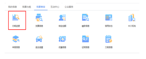 可通過【我要查詢】——【辦稅進(jìn)度】模塊,查詢已提交辦稅事項(xiàng)受理進(jìn)度。