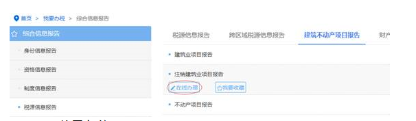 【我要辦稅】→【綜合信息報(bào)告】→【稅源信息報(bào)告】→【建筑不動(dòng)產(chǎn)項(xiàng)目報(bào)告】→【注銷建筑業(yè)項(xiàng)目報(bào)告】