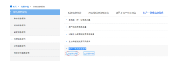云南省電子稅務(wù)局【我要辦稅】→【綜合信息報告】→【稅源信息報告】→【財產(chǎn)一體化信息報告】→【財產(chǎn)一體化信息報告】