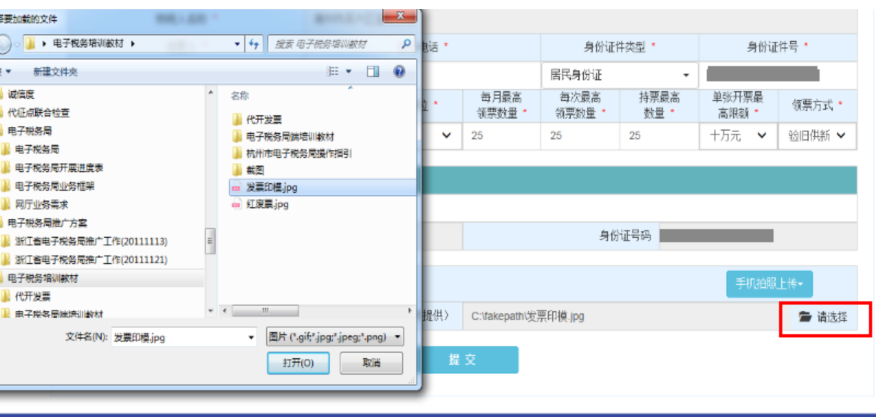 通過調(diào)取電腦已存文件或圖像進(jìn)行上傳發(fā)票專用印模,如下圖。