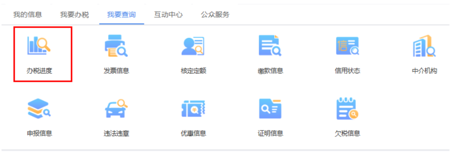 納稅人可通過【我要查詢】—【辦稅進(jìn)度】查詢已提交辦稅事項(xiàng)受理進(jìn)度。
