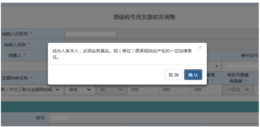 (1)表單中帶*為必填項,納稅人根據(jù)經(jīng)驗需要進(jìn)行填寫。若調(diào)整開票限額,系統(tǒng)會觸發(fā)增值稅專用發(fā)票(增值稅稅控系統(tǒng))最高開票限額審批事項。