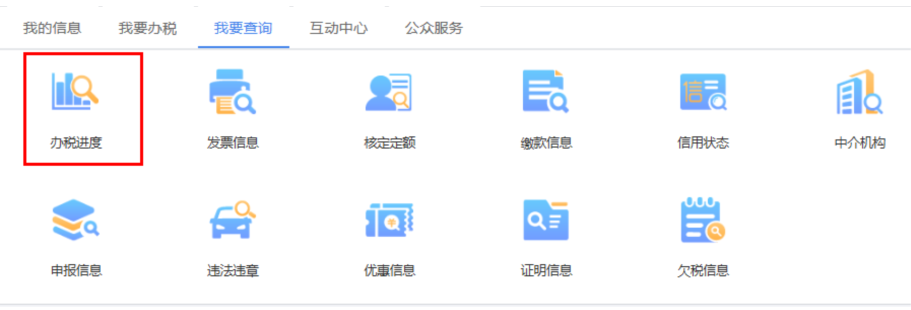 納稅人可通過【我要查詢】—【辦稅進(jìn)度】查詢已提交辦稅事項受理進(jìn)度。