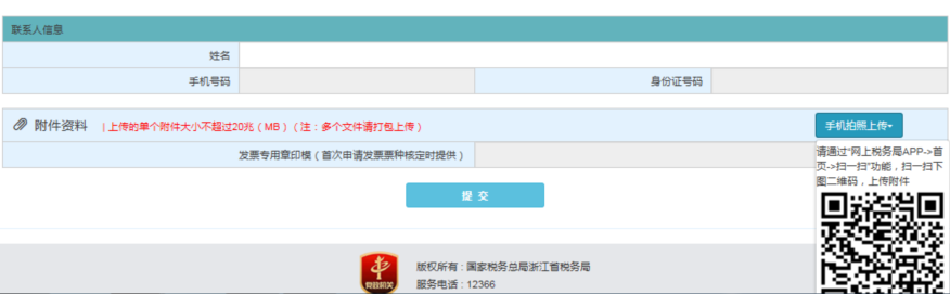 通過手機APP”云南稅務(wù)—我—上傳附件”功能,掃描圖中二維碼,上傳發(fā)票專用印模。