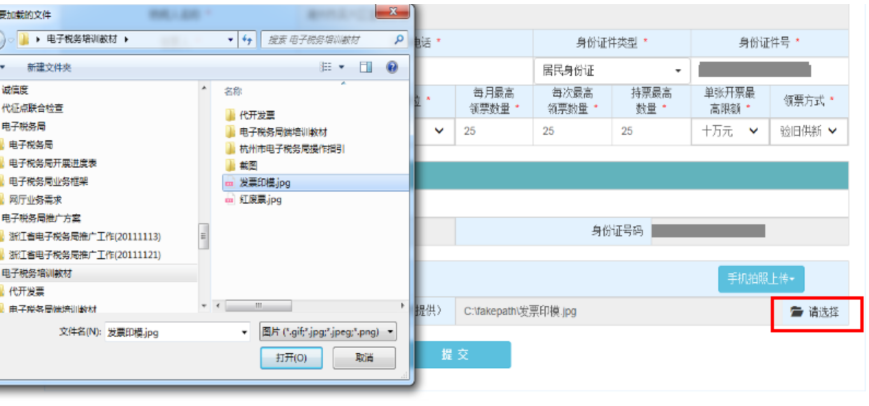 通過調(diào)取電腦已存文件或圖像進(jìn)行上傳發(fā)票專用印模,如下圖。