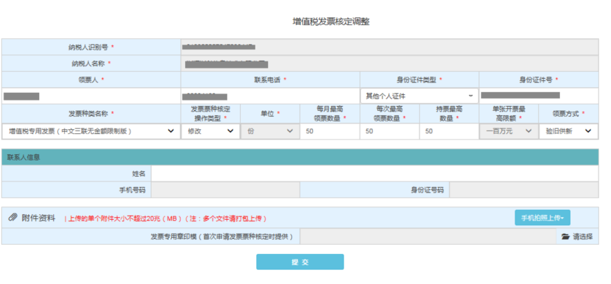 (4)納稅人票種的信息全部填寫完成后,系統(tǒng)生成一張完整的《增值稅專用發(fā)票核定調(diào)整表》,供納稅人檢查信息是否準(zhǔn)確。