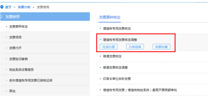 登錄路徑:云南省電子稅務(wù)局-【我要辦稅】—【發(fā)票使用】—【發(fā)票票種核定】—【增值稅專用發(fā)票核定調(diào)整】—【在線辦理】