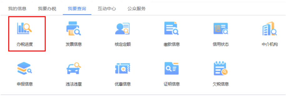 納稅人可通過(guò)【我要查詢】—【辦稅進(jìn)度】查詢已提交辦稅事項(xiàng)受理進(jìn)度。