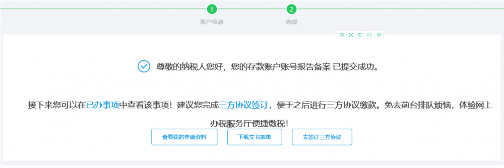 信息提交成功后,系統(tǒng)將展示如下提示信息。