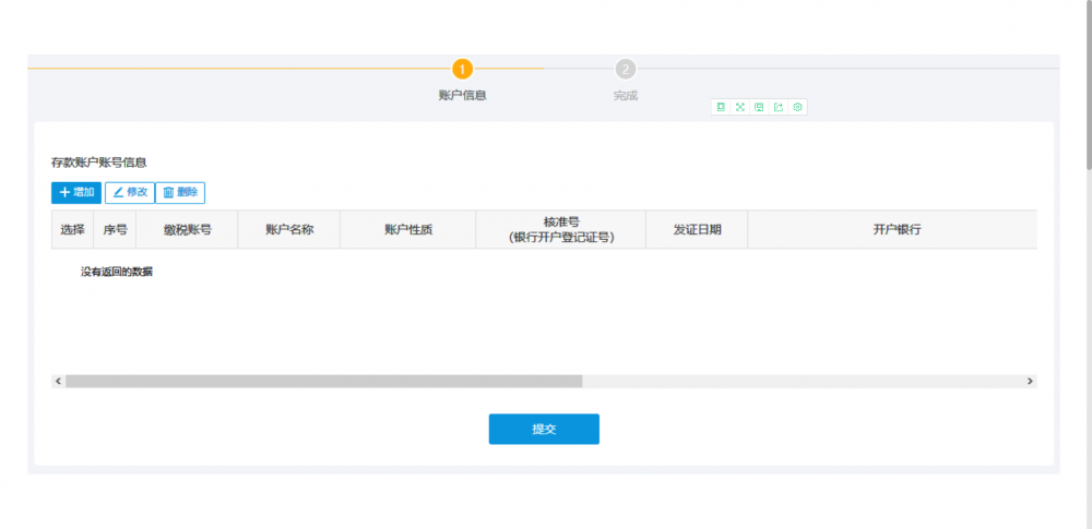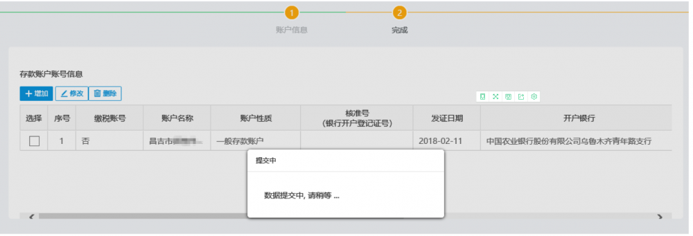 賬戶信息維護完成后,點擊頁面下方的【提交】按鈕提交本次申請。