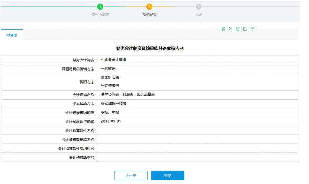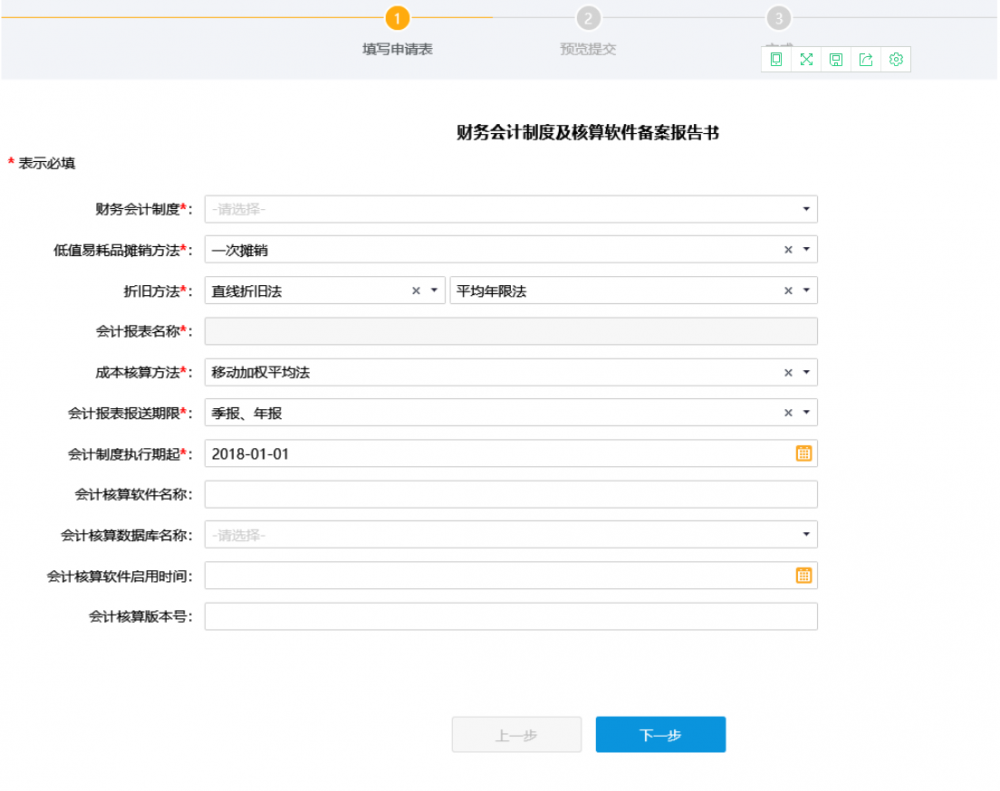 3、申請(qǐng)表填寫完成后,點(diǎn)擊【下一步】按鈕進(jìn)入下一個(gè)環(huán)節(jié)。