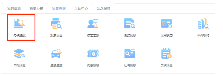 納稅人可通過【我要查詢】—【辦稅進(jìn)度】查詢已提交辦稅事項(xiàng)受理進(jìn)度。