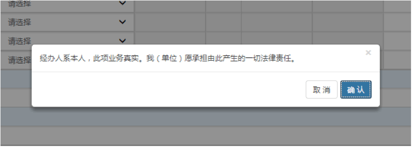 (5)確認(rèn)無誤后,點(diǎn)擊【提交】按鈕,系統(tǒng)跳出確認(rèn)窗口“經(jīng)辦人系本人,此項(xiàng)業(yè)務(wù)真實(shí)。我(單位)愿承擔(dān)由此產(chǎn)生的一切法律責(zé)任?!?/span>