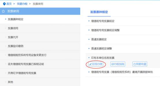 我要辦稅→發(fā)票使用→發(fā)票票種核定→印有本單位名稱發(fā)票