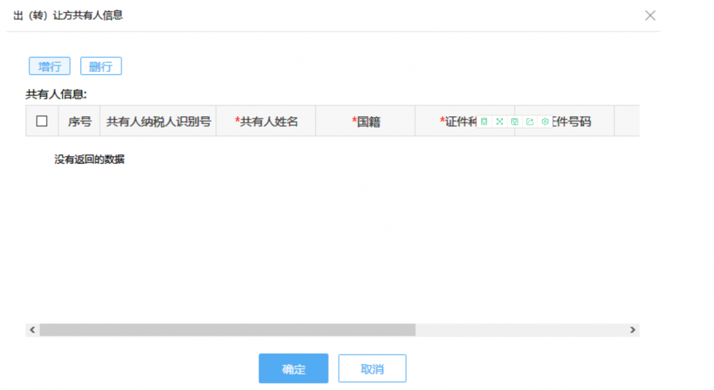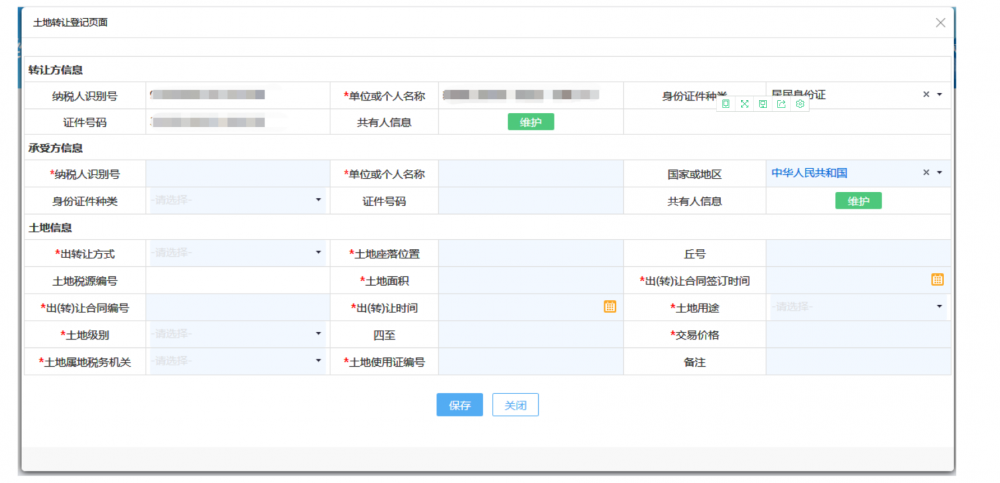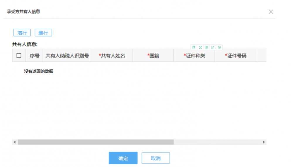 點(diǎn)擊“共有人信息”的【維護(hù)】按鈕可以維護(hù)承受方共有人信息。