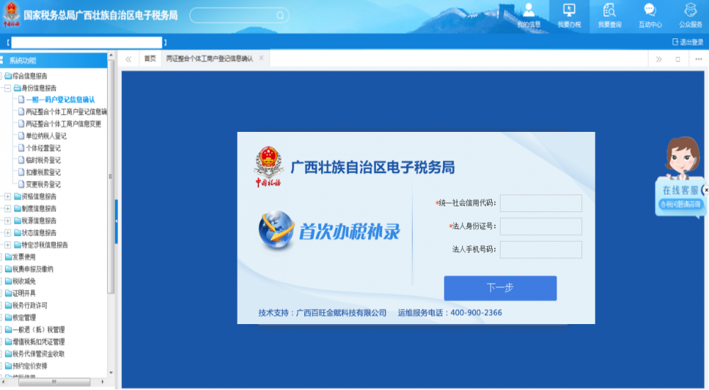 進(jìn)入《兩證整合個(gè)體工商戶(hù)登記信息確認(rèn)》首次辦稅補(bǔ)錄