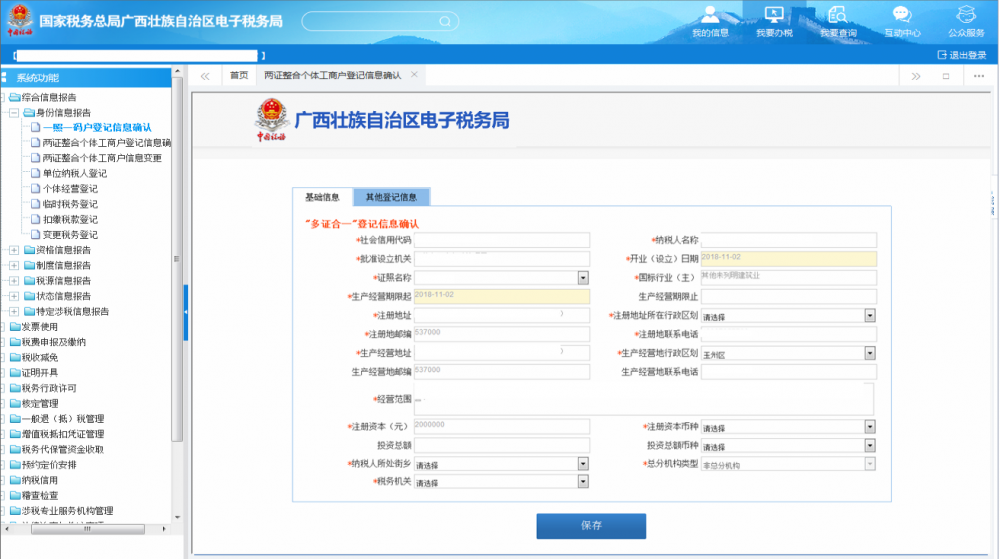 點(diǎn)擊【進(jìn)行首次辦稅補(bǔ)錄】,進(jìn)入基礎(chǔ)信息頁(yè)面: