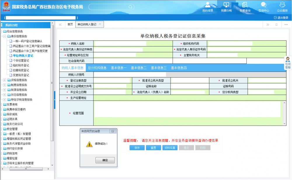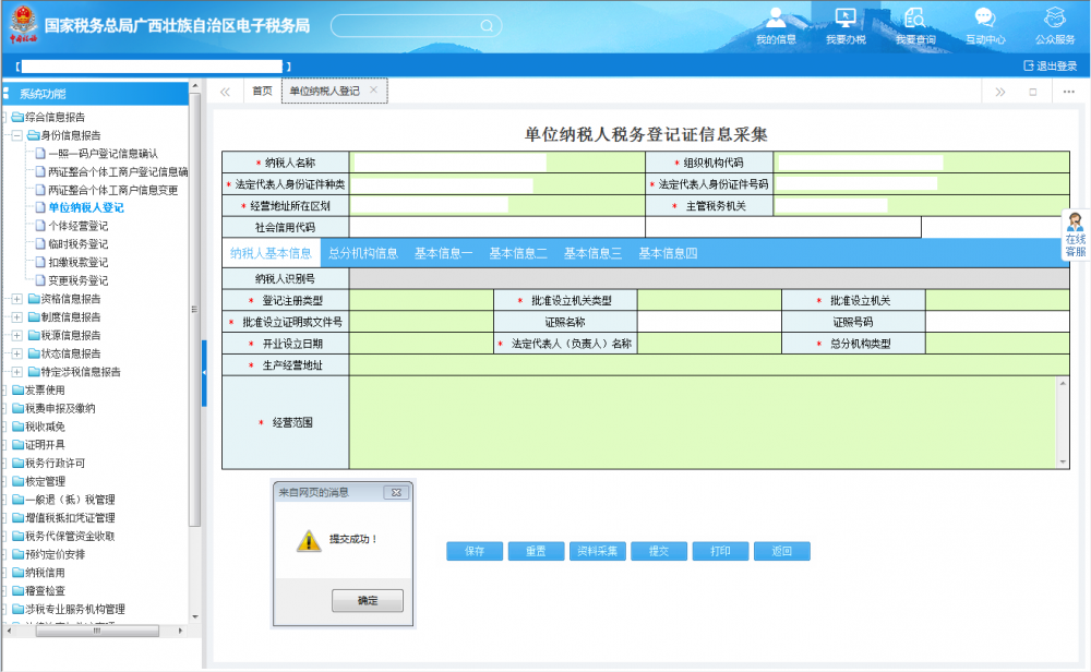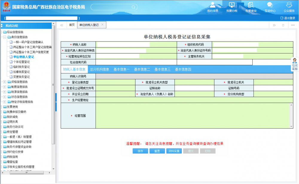 (一)填寫《單位納稅人稅務(wù)登記證信息采集》
