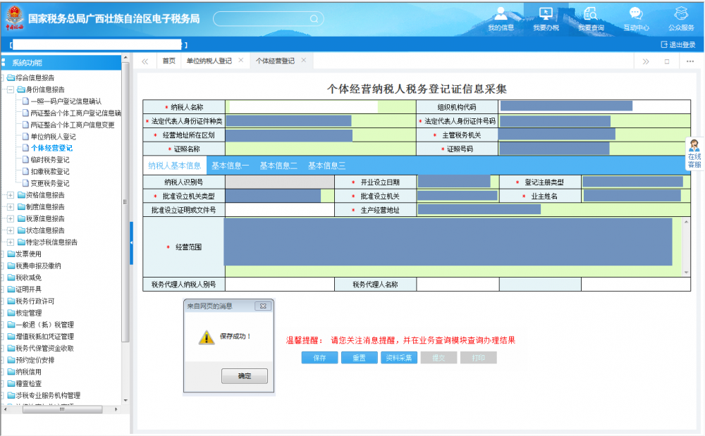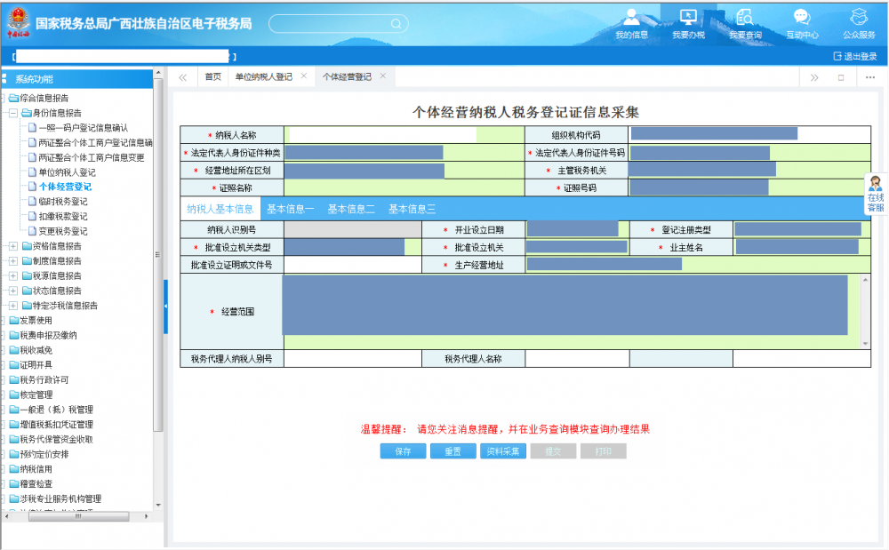(一)填寫《個(gè)體經(jīng)營(yíng)納稅人稅務(wù)登記證信息采集》