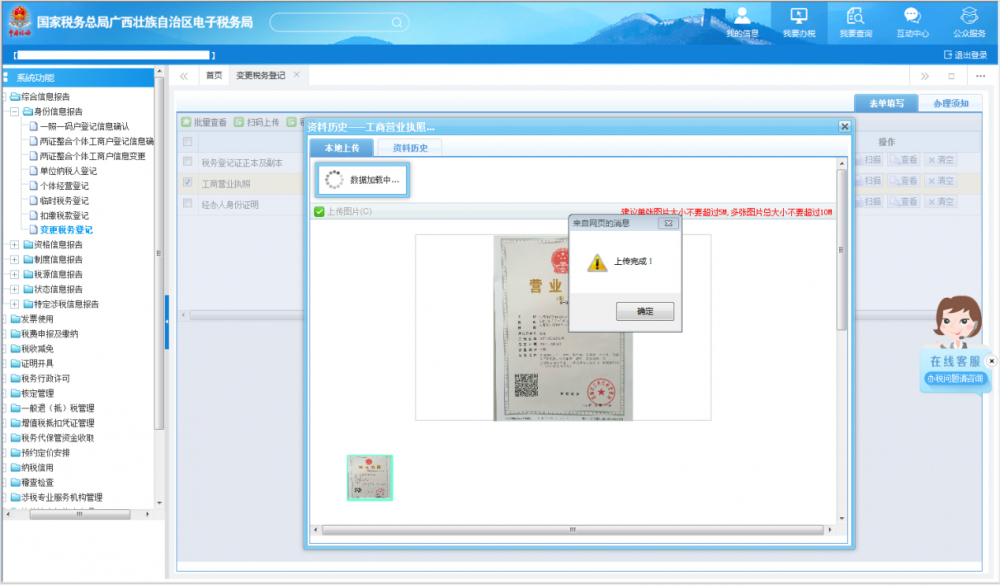 待頁面提示“上傳完成”后,點擊【確定】,即完成資料采集。