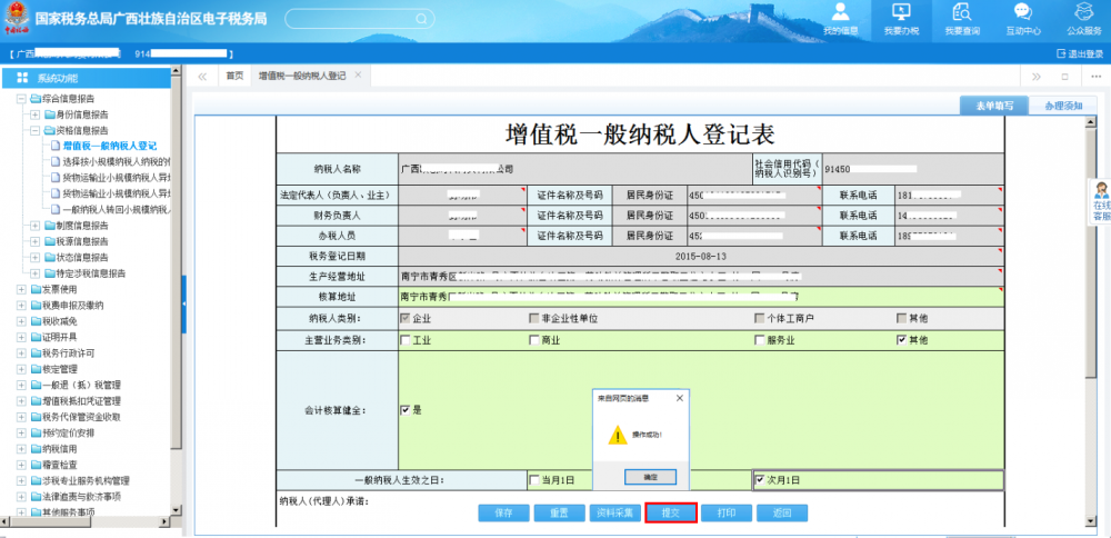 待頁面提示“操作成功”后,點擊【確定】,頁面跳轉至辦稅進度及結果信息查詢。