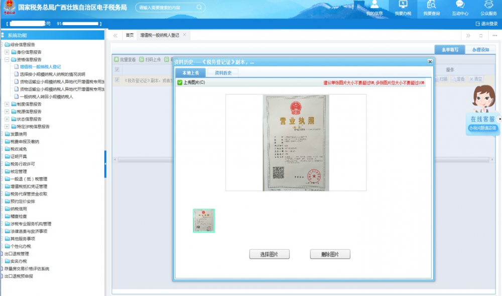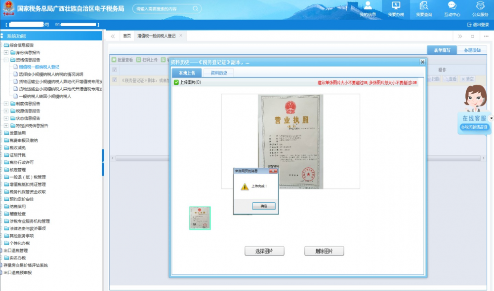 點擊【選擇】/【掃描】/【掃碼上傳】按鈕,從本地選擇一張圖片,點擊【上傳圖片】