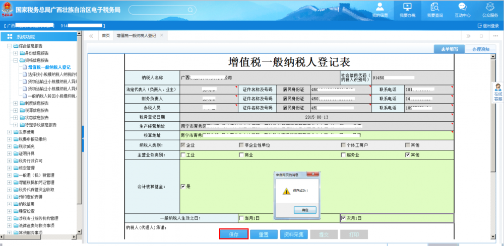 填寫表單,點擊【保存】按鈕,待頁面彈出提示框提示“保存成功”