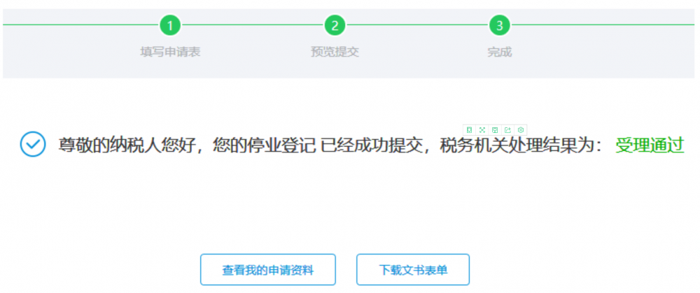 業(yè)務(wù)辦理成功后,系統(tǒng)將顯示如下提示信息。