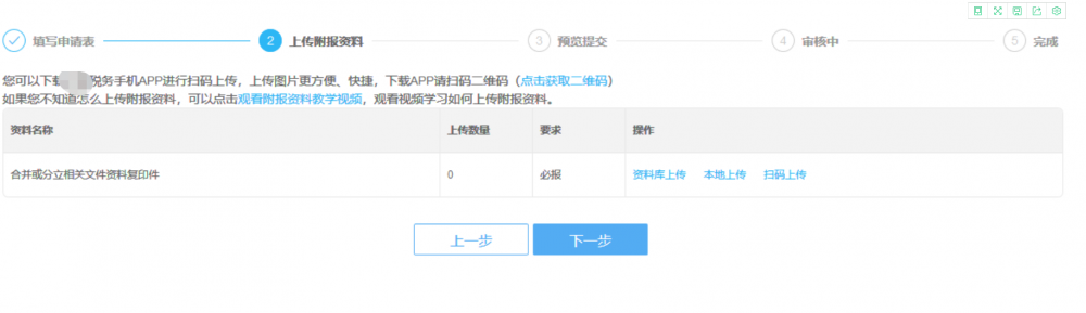 按要求上傳附報資料。上傳完成后,點擊【下一步】按鈕。