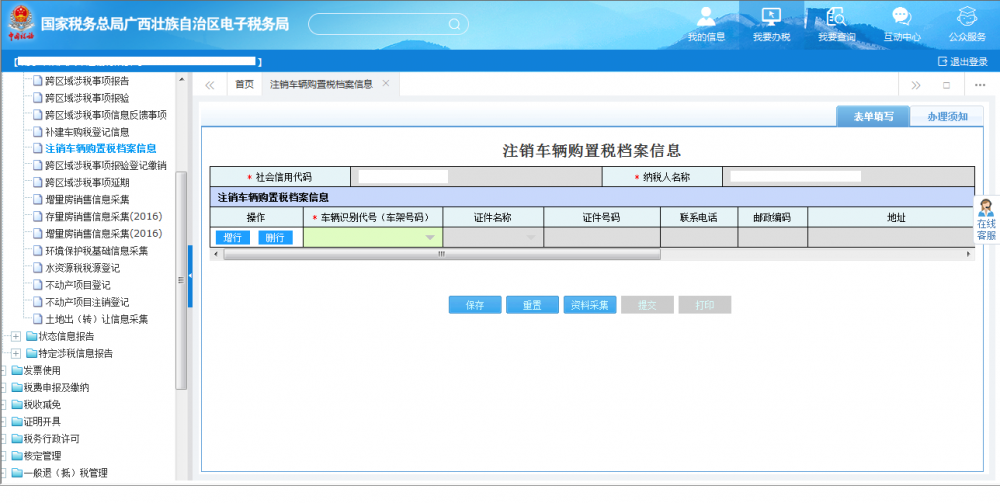 (一)填寫(xiě)《注銷(xiāo)車(chē)輛購(gòu)置稅檔案信息》