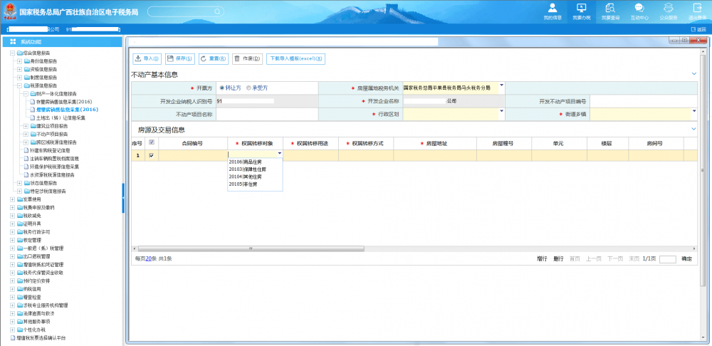 首頁-【我要辦稅】-【綜合信息報(bào)告】-【稅源信息報(bào)告】-【財(cái)產(chǎn)一體化信息報(bào)告】-【增量房銷售信息采集(2016)】