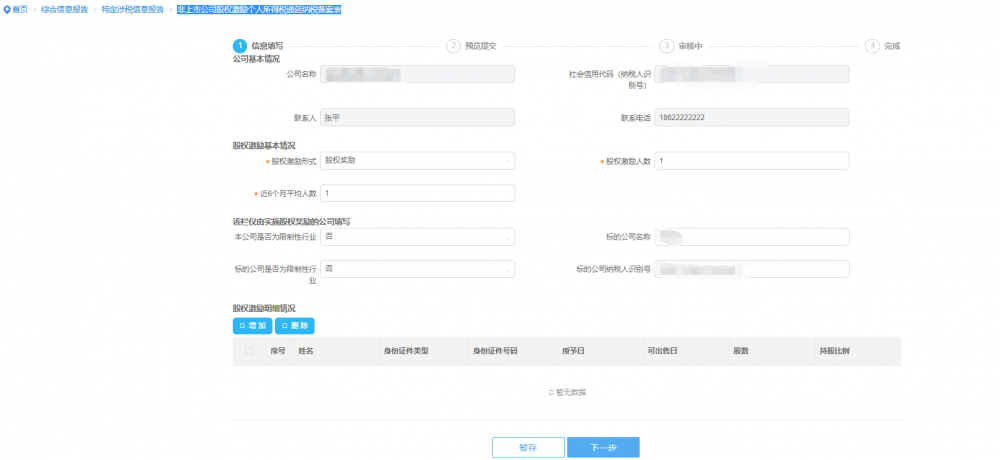 非上市公司股權(quán)激勵(lì)個(gè)人所得稅遞延納稅備案表