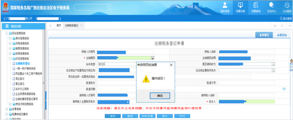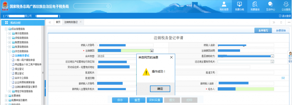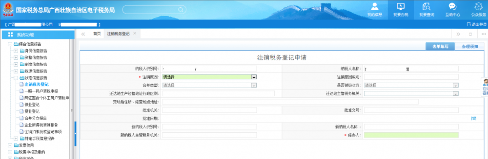 (一)登錄廣西電子稅務(wù)局填寫《注銷稅務(wù)登記申請》