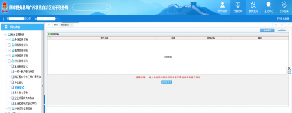 業(yè)務(wù)提交后,可通過右上角【我要查詢—辦稅進(jìn)度及結(jié)果信息查詢】,查看該業(yè)務(wù)辦理進(jìn)度及業(yè)務(wù)狀態(tài):