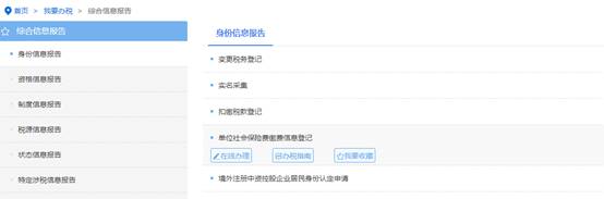 我要辦稅à綜合信息報告à身份信息報告à單位社會保險費繳費信息登記