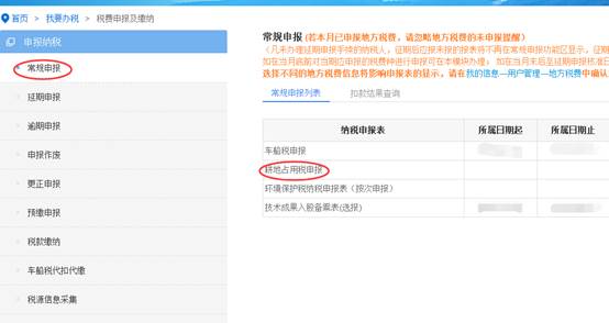 我要辦稅à稅費申報及繳納à常規(guī)申報à耕地占用稅申報